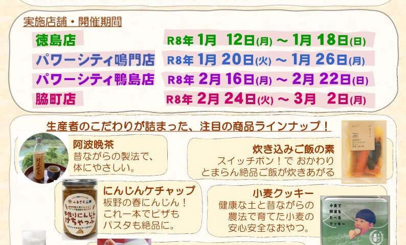 1月は徳島店とパワーシティ鳴門店で開催されましたが、2月3月は鴨島と脇町のマルナカで開催されます!