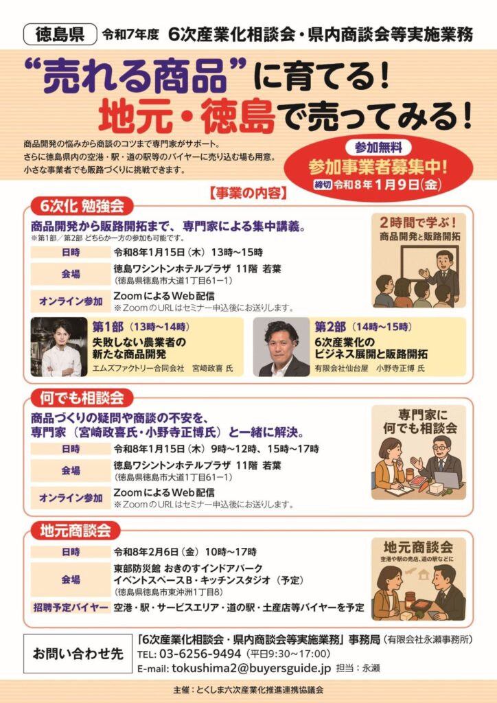 県内の6次産業化商品を対象とした 商談会、相談会 を開催します。