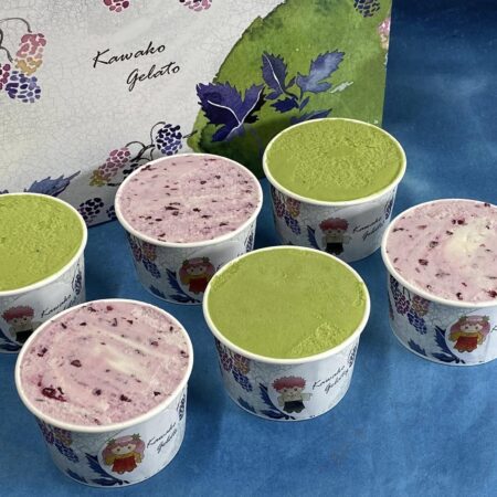 このジェラート開発は、徳島県立川島高等学校の生徒のアイデアを商品化することで地域への愛着を育み、若者がいつまでも住み続けたくなる吉野川市を目指して始まりました。ほのかな苦みと蜂蜜の風味豊かな「桑の葉」と、甘酸っぱさが口いっぱいに広がる「桑の実」の2つの味が楽しめます。乳化安定剤の代わりに吉野葛を使うことで乳化安定剤、増粘剤、香料、着色料不使用の最後の一口まで美味しい100%ナチュラルジェラートです。